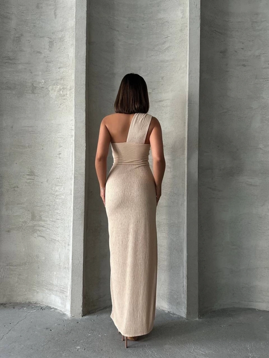 KAZAX tek omuz pliseli elbise ile her şıklık olaya hazırsınız!